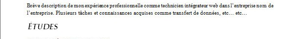 Vous pouvez également utiliser ce document pour pleins d’autres quarts de métiers comme par exemple technicien en informatique, développeur web, webmestre et bien d’autres… bien sûr, tout en personnalisant ce fichier pour en créer un original.