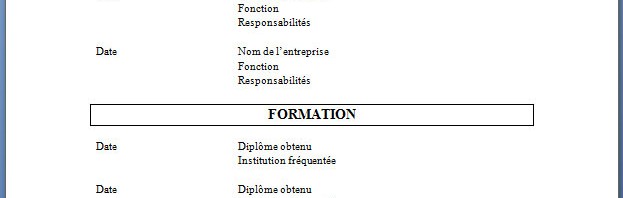 Voici un exemple simple de curriculum vitae avec les titres encadrés.
