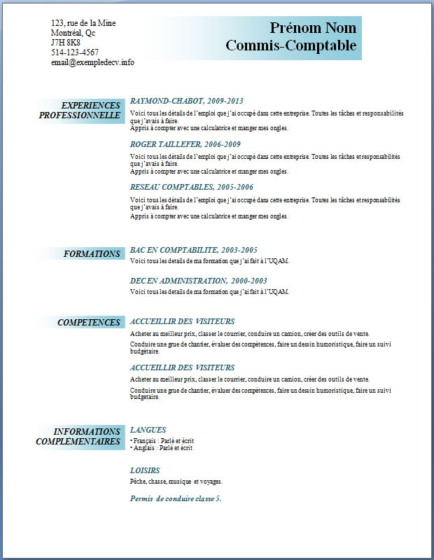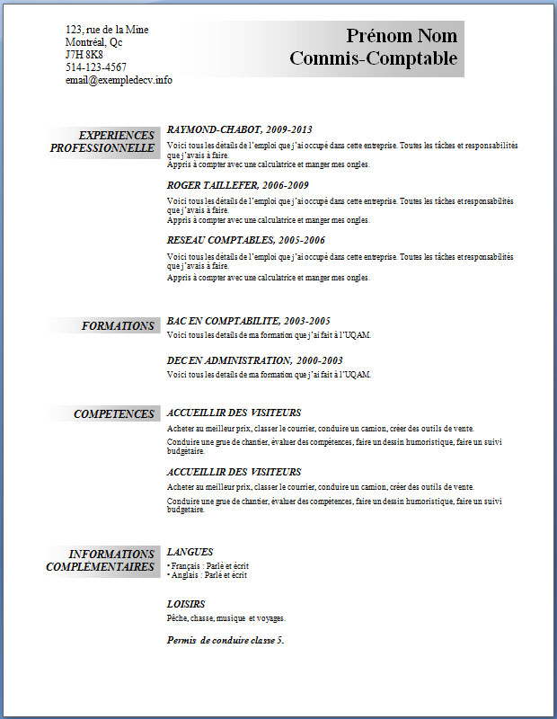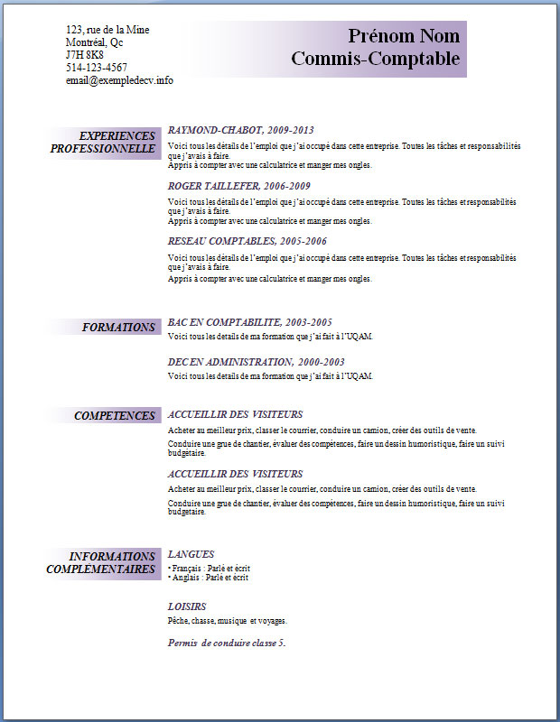 Cliquez sur les liens suivants pour télécharger les modèles gratuits de chacun de ces exemples de CV: