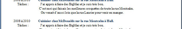 Vous n’avez ensuite qu’à ouvrir le fichier dans word et le modifier pour refléter votre propre situation professionnelle.
