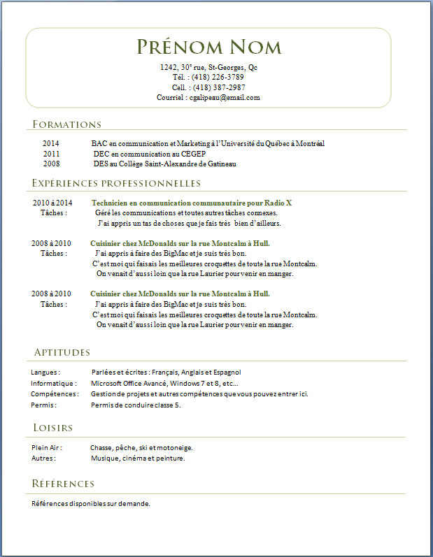Vous pouvez télécharger tout à fait gratuitement chacun de ces modèles words de CV à la fin de cet article en cliquant sur les liens prévus à cet effet.