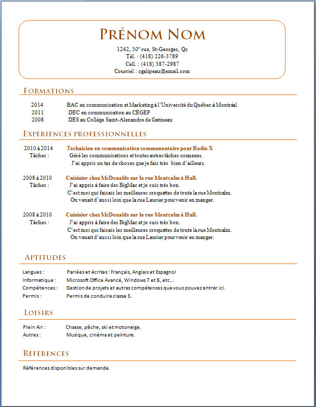 Vous n’avez ensuite qu’à ouvrir le fichier dans word et le modifier pour refléter votre propre situation professionnelle.