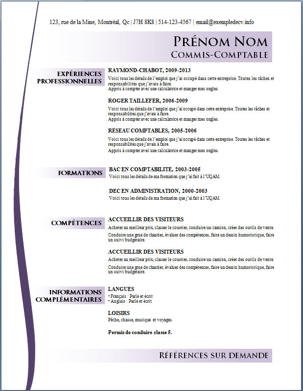 Vous pouvez télécharger chacun des modèles word des exemples de CV suivants tout à fait gratuitement.